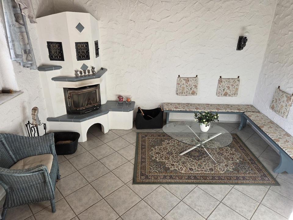 Balkon, Terrasse, Garten, Keller, Einbauküche, Gäste-WC, Kamin, Teppichboden, Fliesen