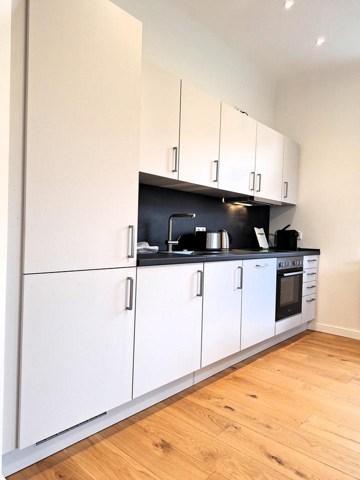 Die Wohnung ist komplett möbliert und voll ausgestattet (Waschmaschine, Bügelaccessoires, Staubsauger, Fön, Handtücher, etc.)