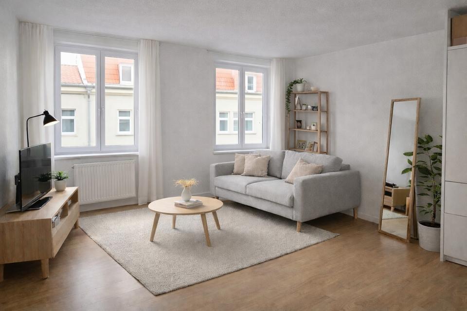 Diese ansprechende Wohnung überzeugt durch einen durchdachten Grundriss, helle Räume und ein angenehmes Wohnambiente. Der großzügige Wohnbereich bietet vielfältige Gestaltungsmöglichkeiten und lädt zum Entspannen ein. Große Fenster sorgen für viel Tageslicht und eine freundliche Atmosphäre.