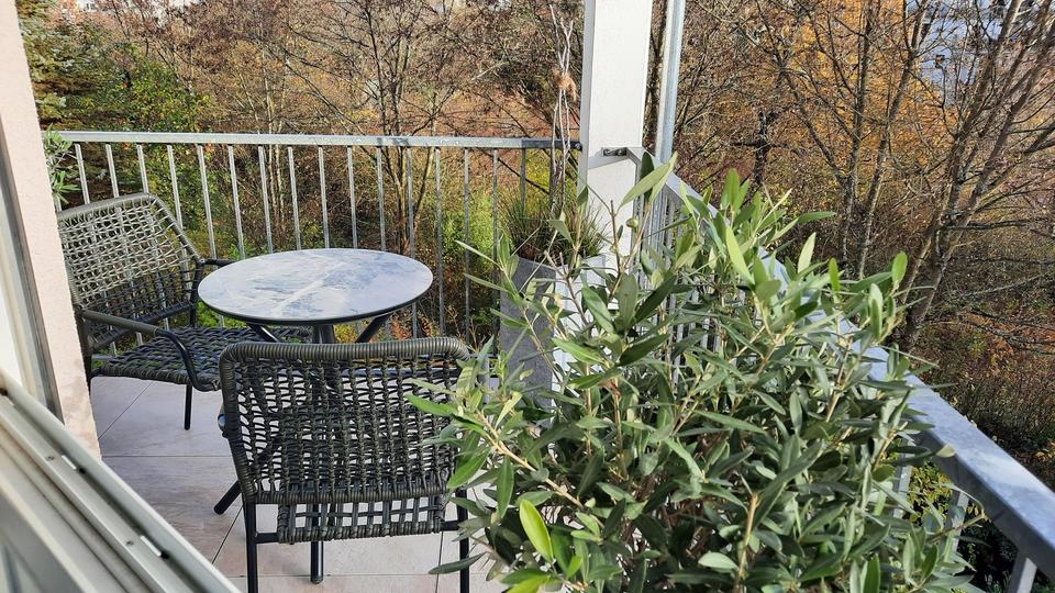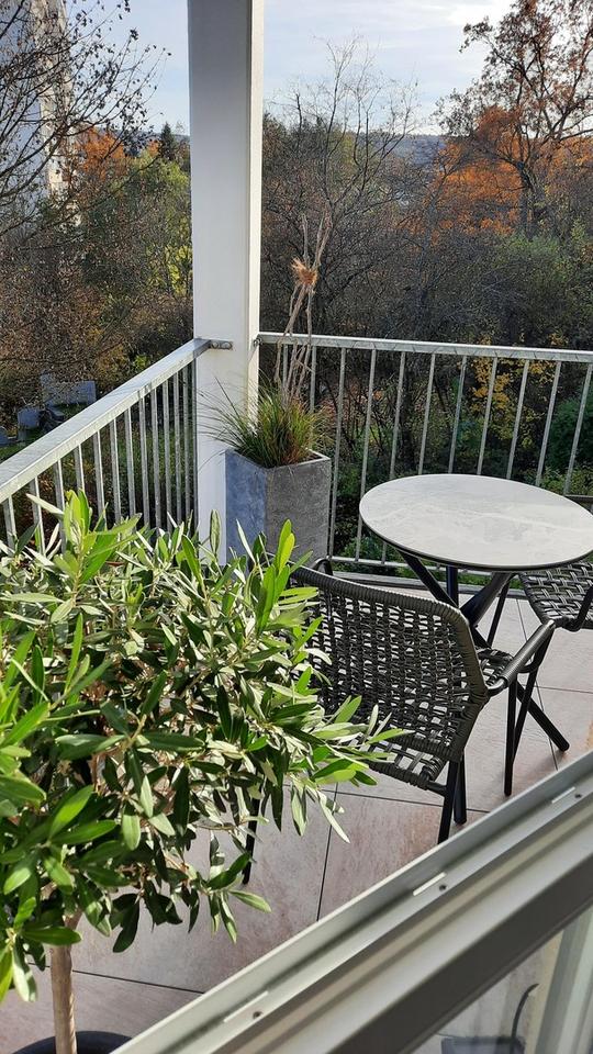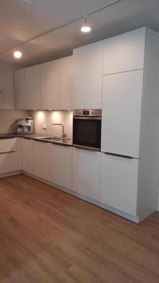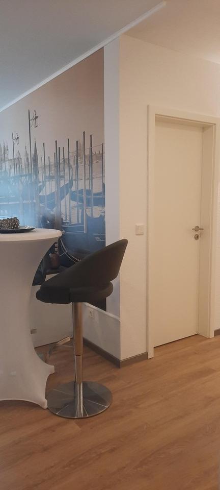 Alle Türen, Alle Zargen, Eiche-Venylboden von JOKA, neuer Balkon mit Möbeln, Schlafzimmer, Einkleide-Wohnwand durch Glastür getrennt, neue Küche und Sideboard von der Fa. NOLTE inkl. integrierte unsichtbare Waschmaschine, Töpfe von Silit, Gläser, Teller, Bestecke, Handtücher ect. Alles was man für einen kurz Aufenthalt braucht! Beispielweise Beruflich oder längeren Aufenthalt in Bad Kissingen (Kur oder Urlaub)