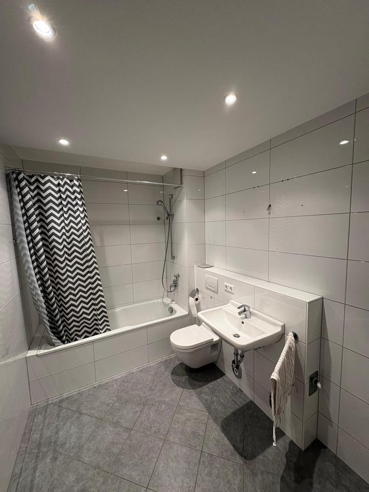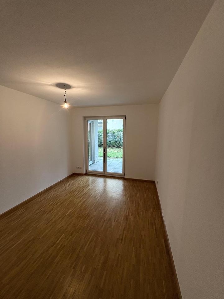 Schöne 2,5 Erdgeschosswohnung mit Terasse, Garten, Keller und Tiefgaragenplatz. Die Wohnung hat einen großes Wohn- und Esszimmer mit Küchenzeile und ein Schlafzimmer. Aus beiden Zimmer kommt man auf die Terasse und in den ebenerdigen Garten. Das Badezimmer mit einer Badewanne mit Dusche ausgestattet. Die Zimmer und der Wohnungseingang sind durch einen kleinen Flur verbunden. Alle Bereich haben Fussbodenheizung in Flur, Bad und vor der Küchenzeile liegen Fliesen, in den Zimmern liegt ein Paketboden. Zur Wohnung gehören ein geräumiges Kellerabteil und ein Tiefgaragenstellplatz.