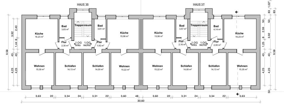 In zwei gepflegten Mehrfamilienhäusern entstehen derzeit 16 moderne Wohnungen mit ca. 56,75 m² Wohnfläche. Jede Einheit wird vollständig saniert und überzeugt mit einem klaren, offenen Grundriss, viel Tageslicht und einer hochwertigen Ausstattung.