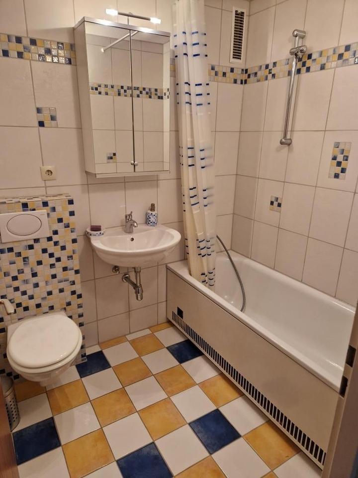 Das Badezimmer ist mit WC und einer Badewanne ausgestattet.