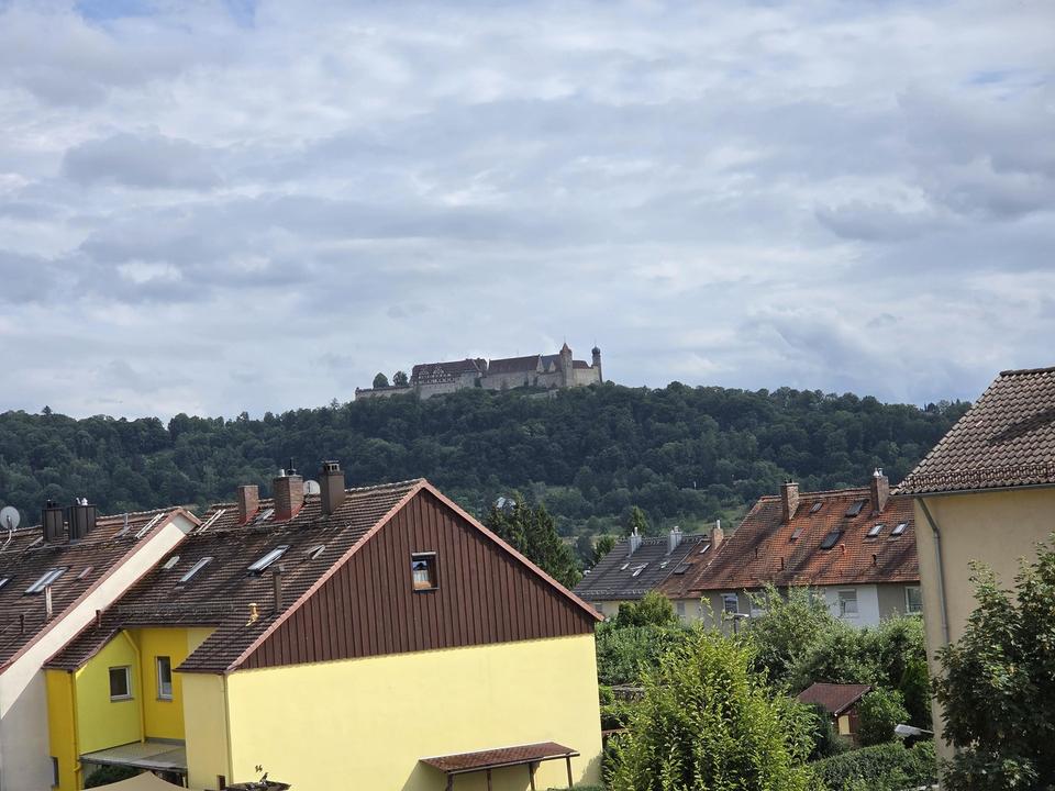 Balkon mit Blick ins auf die Feste Coburg mit Einkaufsmöglichkeiten (Rewe 250 Meter)