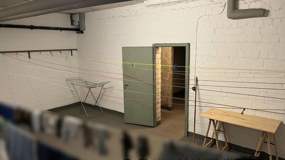 Zur Wohnung gehören außerdem ein großer Kellerraum, ein Fahrradraum sowie gemeinsame Räume zum Waschen und Trocknen im Untergeschoss.