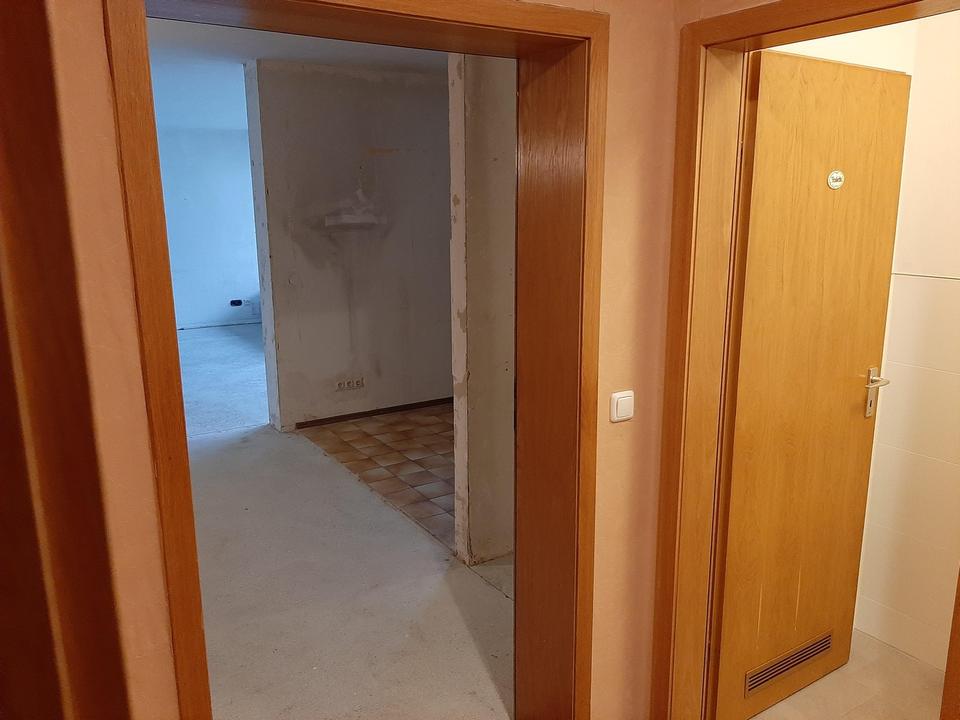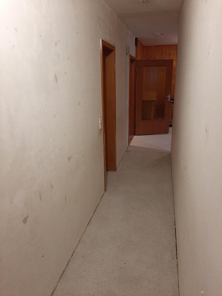Alle Fußböden sind geschliffen, bis auf die Bereiche welche mit Fließen belegt sind. Tapeten sind in mehreren (nicht allen) Räumen entfernt, Malerarbeiten wie Ungleichheiten spachteln und streichen erforderlich.