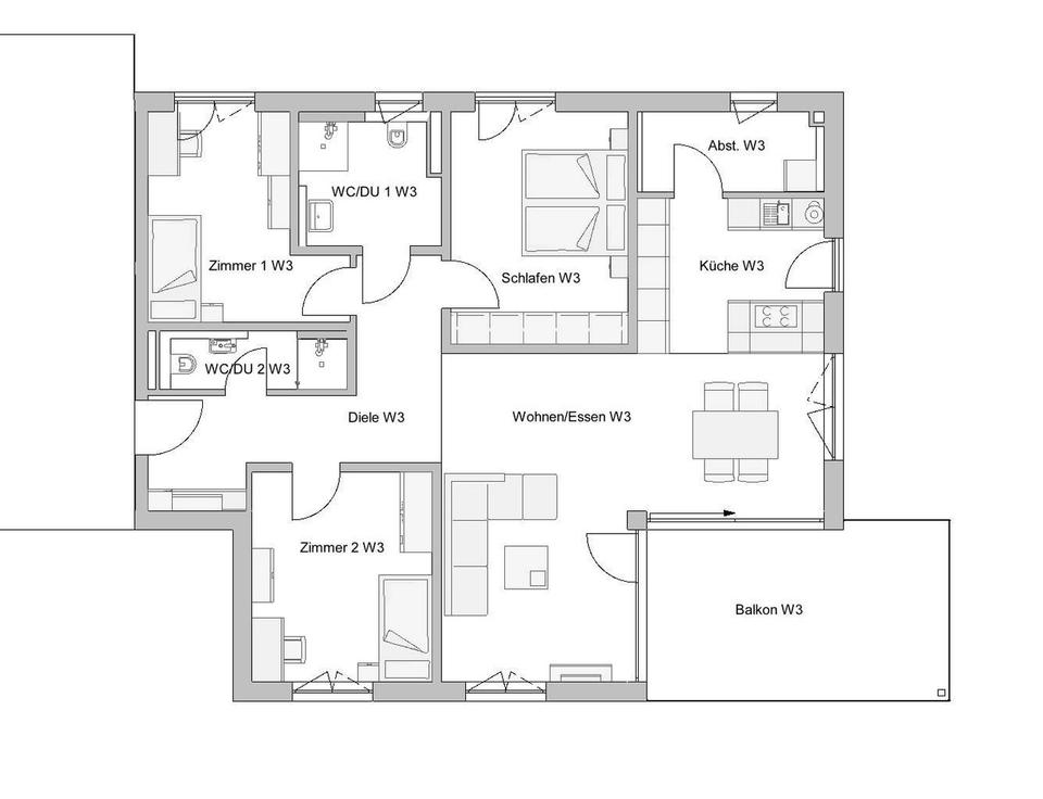 4-Zi-Wohnung im EG W1, OG W3 117,93 m² 2005,00€
