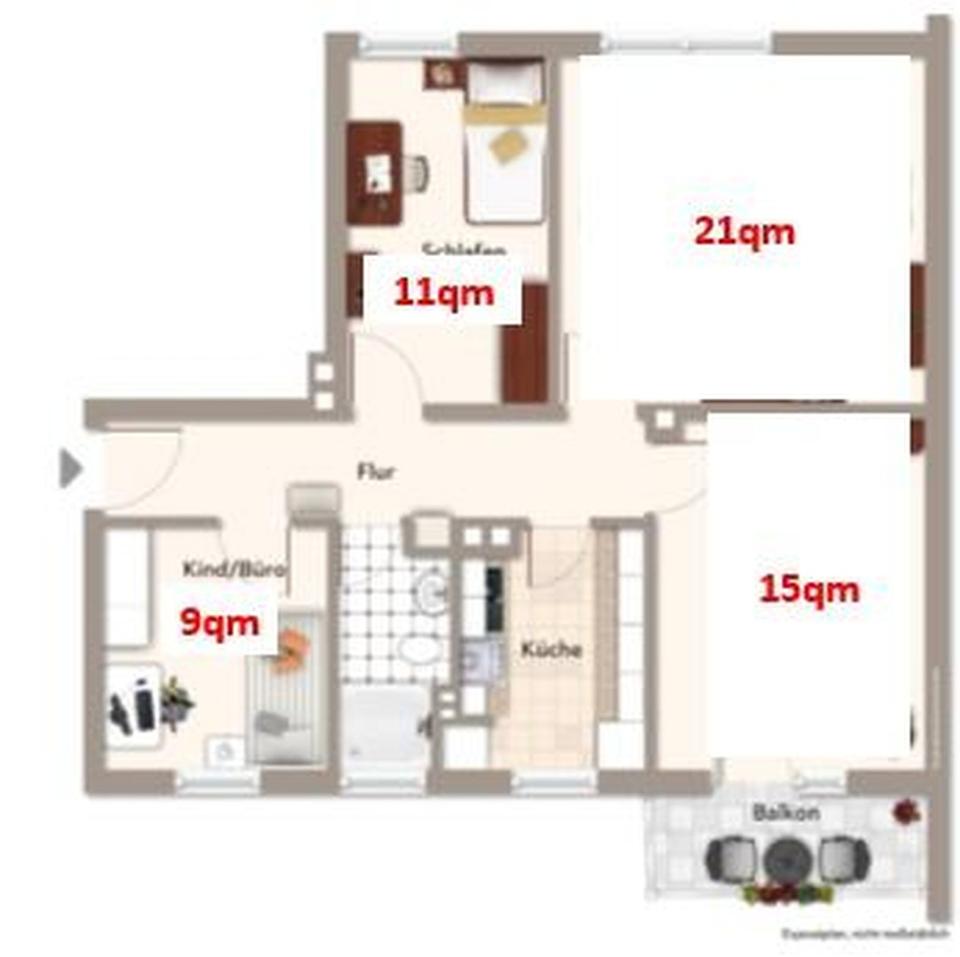 Zimmer 2: ca. 11 qm – Ideal geschnitten.