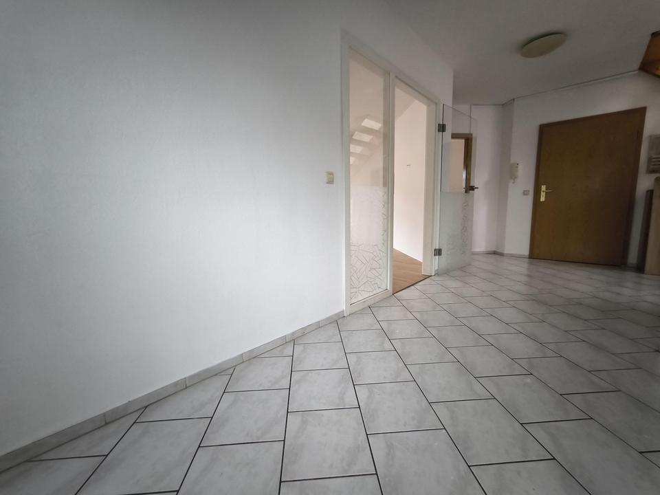 Objektbeschreibung: Liebe Interessenten, renovierte Maisionettenwohnung im liebevolles Mehrfamilienhaus mit KFZ-Stellplätzen. Schönem großen Gemeinschaftsgarten, eigener Dachterrasse, Waschkeller. 2 Bäder – eines mit WC, Wanne und Dusche und Fenst…