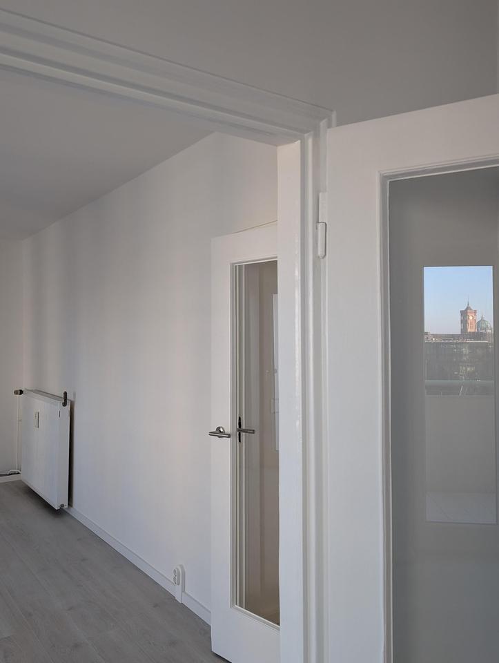 Die praktische Wohnung mit 102,45 qm überzeugt durch ihren effizienten Grundriss, den großen Balkon mit einer schönen Aussicht Richtung Westen mit Rotem Rathaus und Alexanderplatz sowie einem hellen Innenleben. Dieses verdankt sie den großzügigen Fensterflächen und dem Umstand, dass der Baukörper nach drei Seiten (Westen, Süden, Norden) frei steht, ohne direkte Nachbarbebauung. Auf der östlichen Seite befindet sich die Nachbarwohnung.
