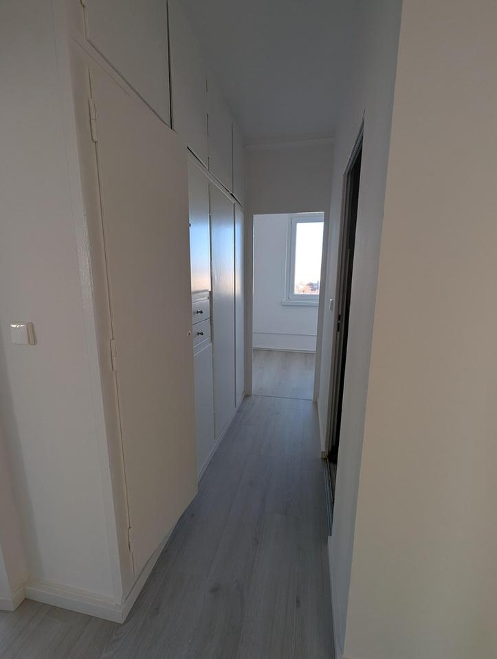 Die Wohnung liegt in einem klassischen 10 Geschosser im 10. Stock und damit im obersten Stockwerk des Mehrfamilienhauses. Der Fahrstuhl fährt bis in den 9. Stock; von dort ist die Treppe in den 10. Stock zu nehmen. Im Treppenaufgang befinden sich insgesamt 20 Wohnungen, pro Etage gibt es lediglich zwei Eigentumswohnungen, die jeweiligen Eingangstüren liegen links und rechts des Fahrstuhls.