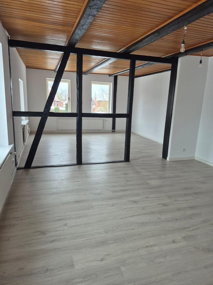 Großzügige, frisch renovierte 4,5 Zimmer-Wohnung auf dem Land in einem ehemaligen Bauernhaus, ideal für eine Familie mit Kinder, ca. 160 qm, Wohn-Esszimmer mit sichtbaren Balken, große Wohnküche mit neuer EBK (wird Anfang Februar eingebaut), Badezimmer mit Badewanne und Dusche, großer Balkon, Hauswirtschaftsraum für Waschmaschine, Trockner etc., ausgestattet mit Kücheneinbauschränken, PKW- Stellplatz auf dem Hof