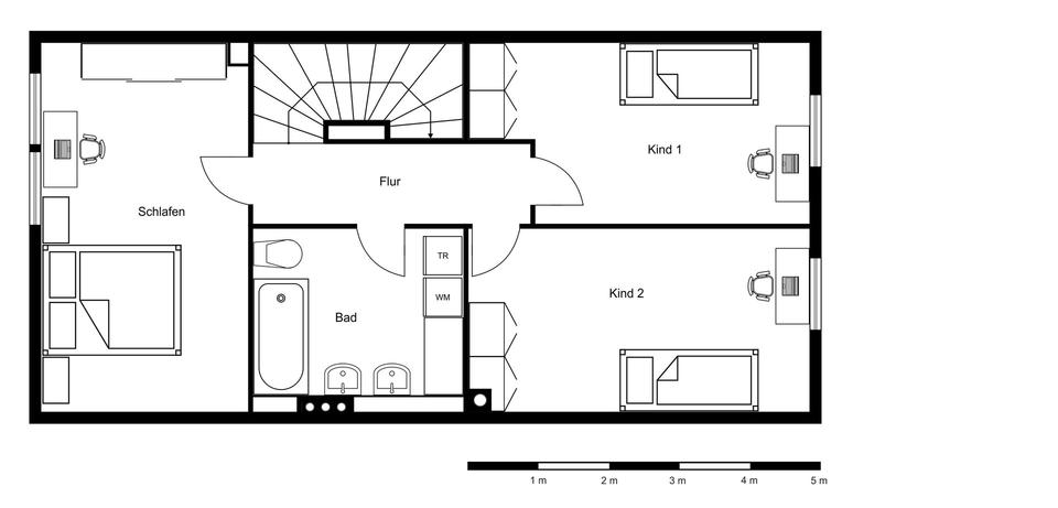 Im Dachgeschoss befinden sich zwei Zimmer mit Dachschrägen und Gauben, ein ebenso hell gekacheltes Duschbad und der Heizungsraum mit Dachfenster, der sich ideal zum Wäscheaufhängen eignet.