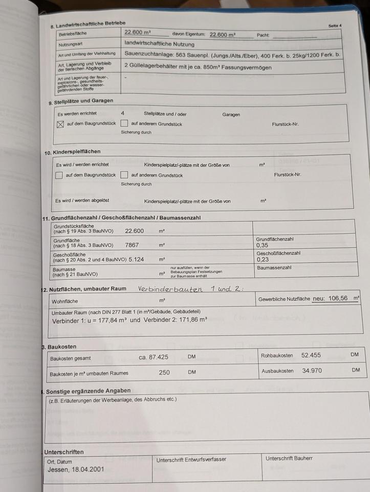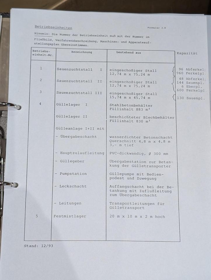 Bei dem Objekt handelt es sich um eine ehemalige Sauenanlage mit QS-Zertifizierung für die Haltung von 577 Sauen.