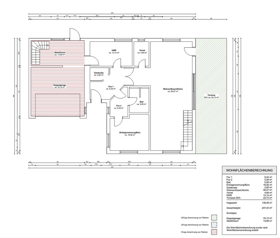 – separate Einliegerwohnung für Gäste, Büro oder Angehörige
