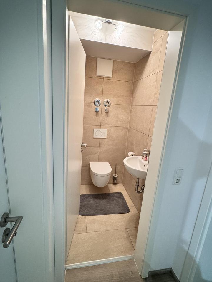 Das frisch sanierte Badezimmer (2024) bietet zeitgemäßen Komfort.