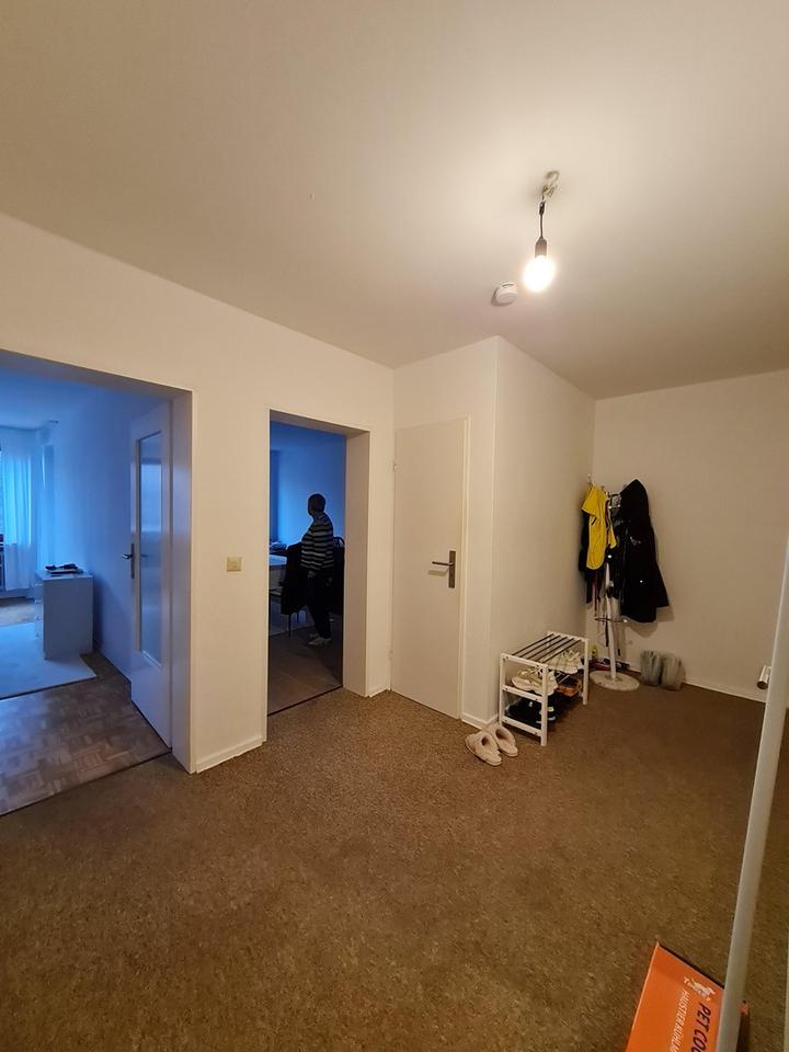 Vom Flur (~9 m²) der Wohnung gelangt man in das helle Wohnzimmer (~22 m²) bzw.