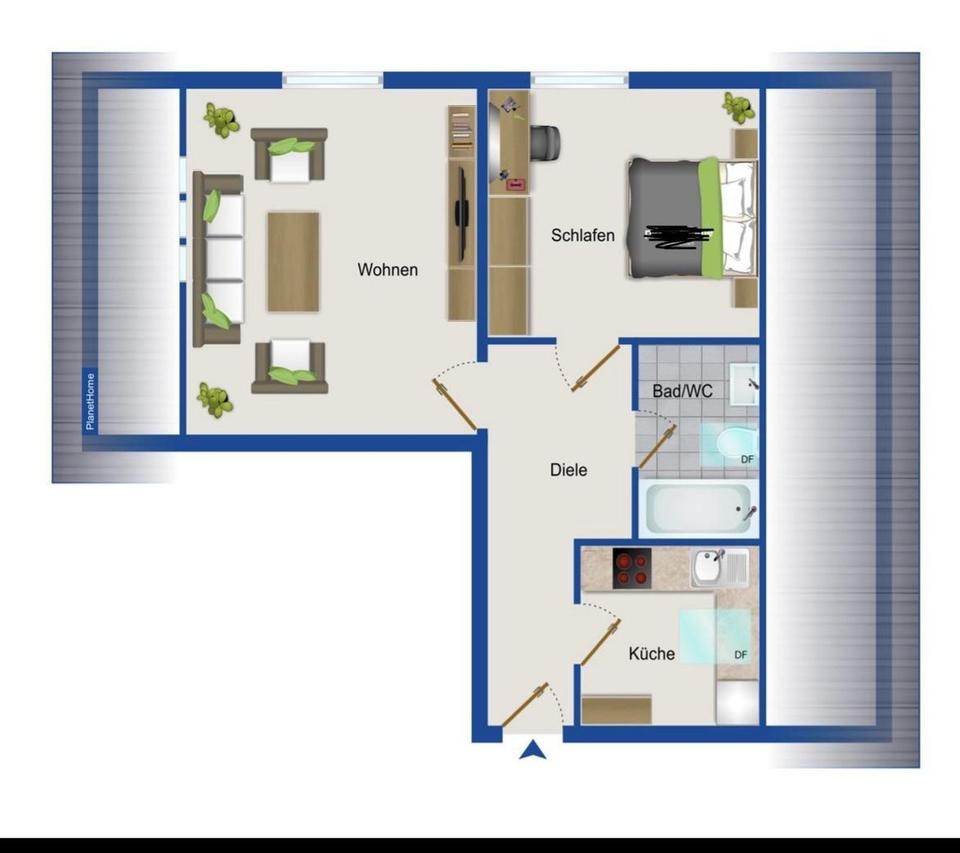 Auf ca. 58 m² Wohnfläche verteilen sich ein großzügiger Wohn- und Essbereich, ein separates Schlafzimmer, eine Küche sowie ein Tageslichtbad.