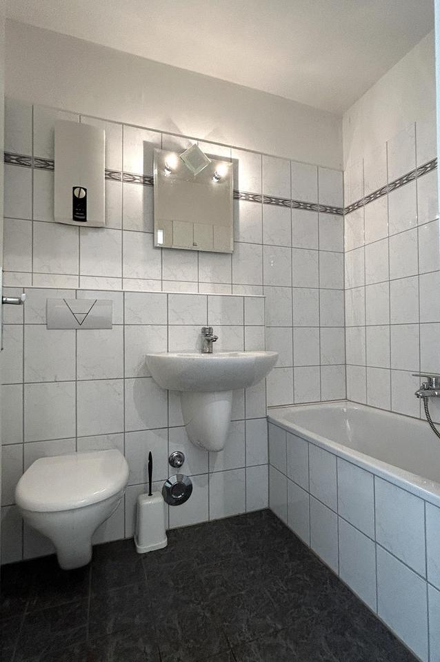 – Badezimmer mit Dusche, WC und Waschtisch