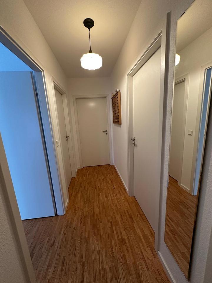Die Wohnung ist mit hellen Fliesen in Küche und Bad, sowie Parkett in den Wohn- und Schlafzimmern ausgestattet. 2021 wurde die Wohnung umfassend modernisiert. Es wurde zum Teil neu tapeziert und komplett weiß gestrichen. Das Parkett wurde erneuert und neue weiße Lichtschalter und Steckdosen angebracht. Die Sanitäranlagen wurden erneuert (Wasserhähne, Küchenarmatur, Wannenthermostat, Duschsystem, Thermostat, Küchenspüle von Hansgrohe und Blanco).