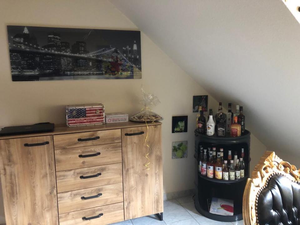 Auf dieser Ebene befinden sich außerdem die durchdachte Küche mit Durchreiche, ein Zimmer, ein Badezimmer mit Bad, sowie ein separates WC. In der oberen Ebene befindet sich momentan ein Schlafzimmer, sowie ein separates Ankleidezimmer. Das Badezimmer hier hat WC und Dusche. Die oberen Räume bestechen durch die hohen Decken, was ein besonderen Flair vermittelt. Mit dieser flexiblen Bauweise, können Sie ihren persönlichen Wohnwünschen freien Spielraum lassen.
