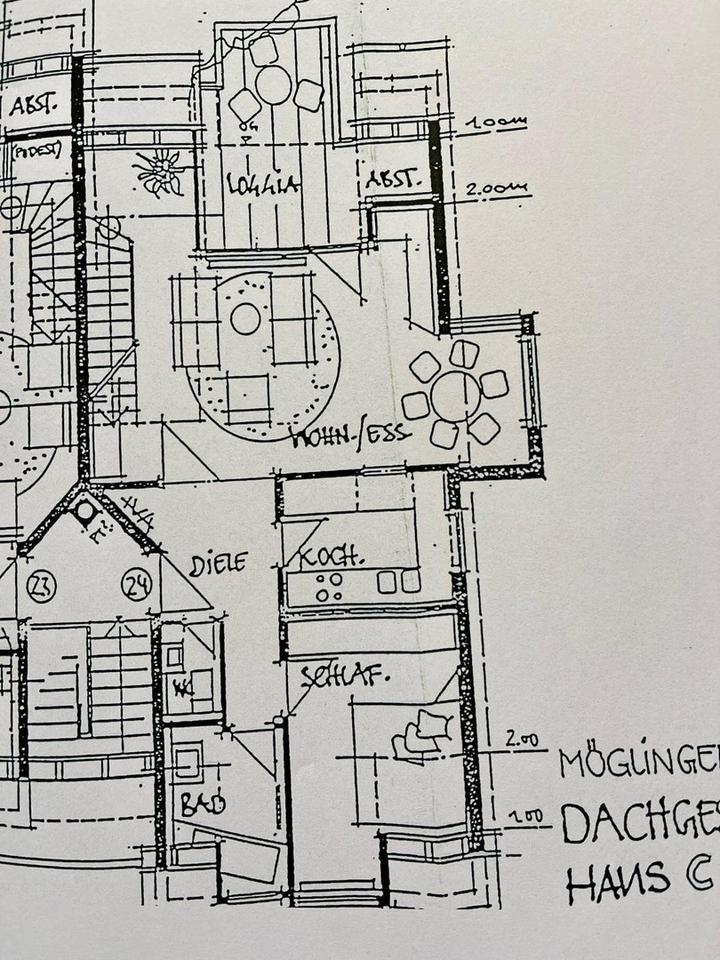 Schon beim Eintritt verspüren Sie die besondere Atmosphäre dieser Wohnung. Helle Räume, die klare durchdachte Raumaufteilung, und die geschickt eingefügte Holztreppe, die beide Etagen miteinander verbindet, verleihen diesem Zuhause seinen unverwechselbaren Charme. Im Mittelpunkt der Wohnung steht der großzügige Wohn- und Essbereich. Von hier aus gelangen Sie auf die große extravagante Loggia. Genießen Sie den freien Blick in die Weite, Ruhe und die Sonne bis tief in die Abendstunden. Die perfekte Wohlfühloase über den Dächern von Möglingen.