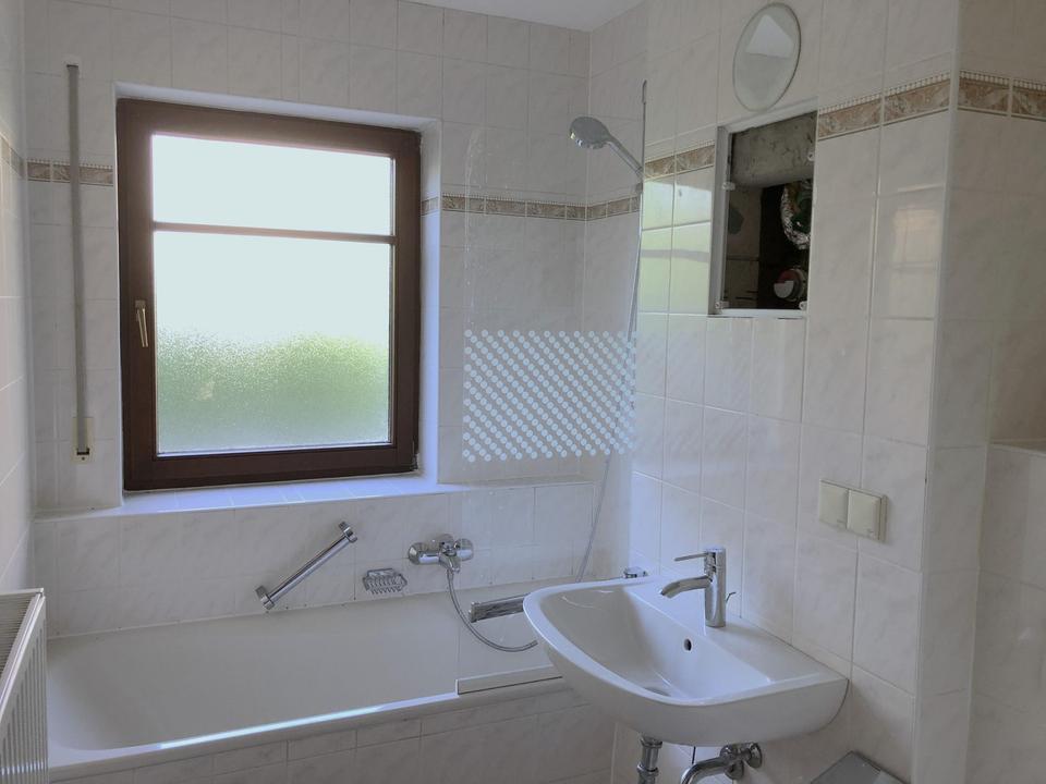 Im oberen Bereich erwartet Sie ein heller Flur mit Garderobennische, ein Tageslichtbad mit Wanne und WC, ein großzügiges Kinder- oder Arbeitszimmer sowie das lichtdurchflutete Wohn- und Esszimmer mit direktem Zugang zur sonnigen Süd-Terrasse und dem angrenzenden Garten – ein privates grünes Paradies. Die separate Küche mit Fenster bietet viel Platz zum Kochen und Genießen.