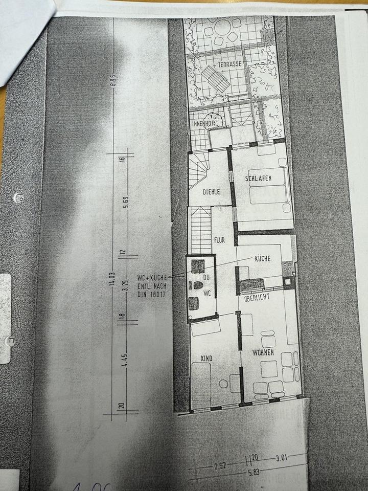 Im 1.OG steht eine helle 3-Zimmer Wohnung (64qm) zur Verfügung.Von dort geht es auf eine riesige Dachterrasse (43 qm), diese wird von den Mietern im 1.OG und 2.OG gemeinsam genutzt (Aufteilung ca.3/4 Wohnung 2.OG, 1/4 Wohnung 1.OG.