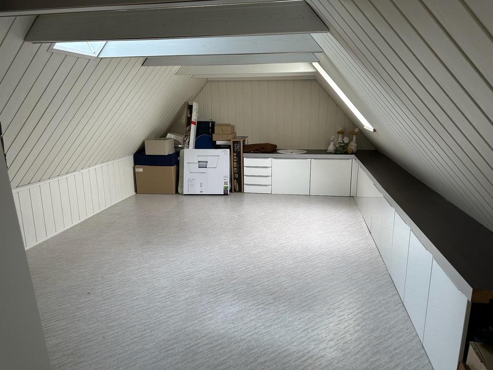 Ein zusätzlicher Spitzboden, erreichbar über eine kompakte Auszugsleiter, bietet zusätzlichen Stauraum und ist ausbaufähig.