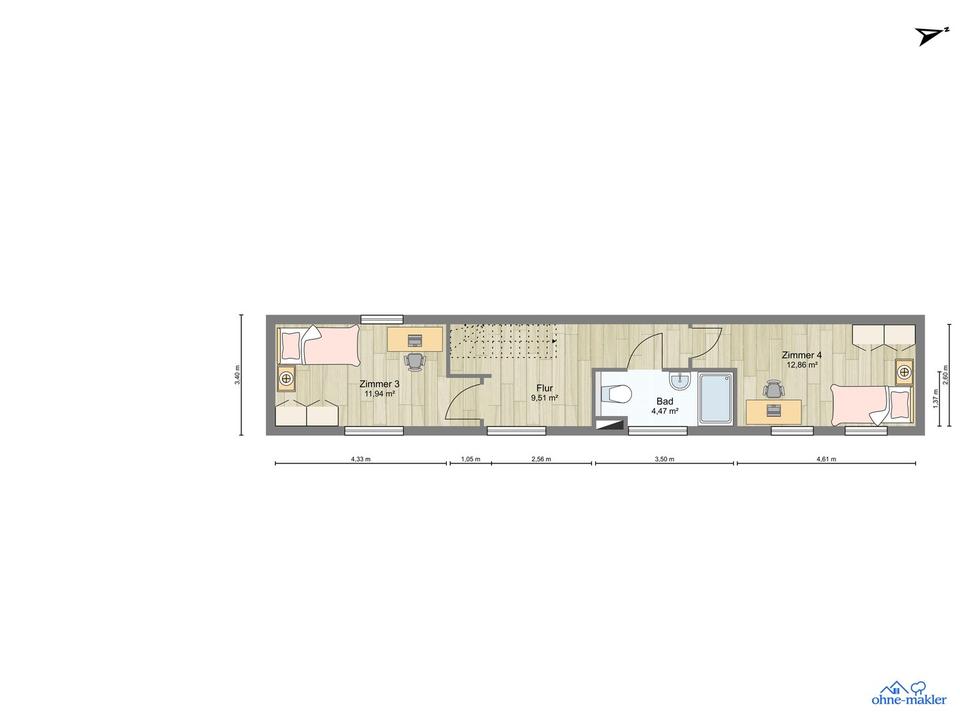 Diese 5-Raum Maisonette-Wohnung verfügt über einen großzügigen Balkon zum Hinterhof mit Nord-Ost-Ausrichtung. Sie zeichnet sich aus durch vier Schlafzimmer, ein Gäste-WC, zwei volle Bäder – eines davon mit Badewanne und einen separaten Hauswirtschaftsraum mit Waschmaschinenanschluss innerhalb der Wohnung. Zur Wohnung gehört ein Kellerabteil. Die Vermietung erfolgt ohne Küche. Der Einbau und damit die Anmietung einer modernen Küche mit Elektrogeräten ist nach Rücksprache optional und individuell möglich.