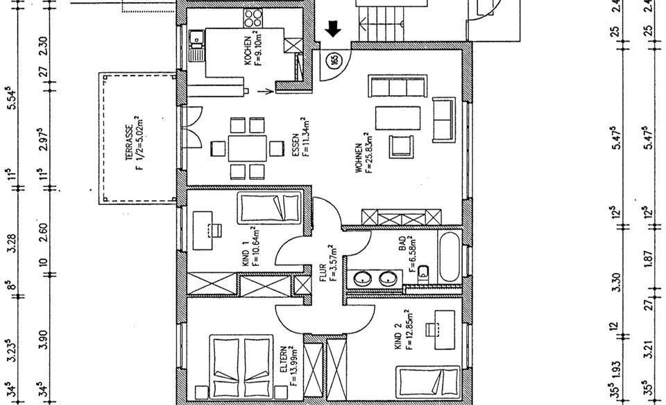 – 4 Zimmer (Wohnen, Kochen/Essen, Schlafen, 2 weitere Zimmer)