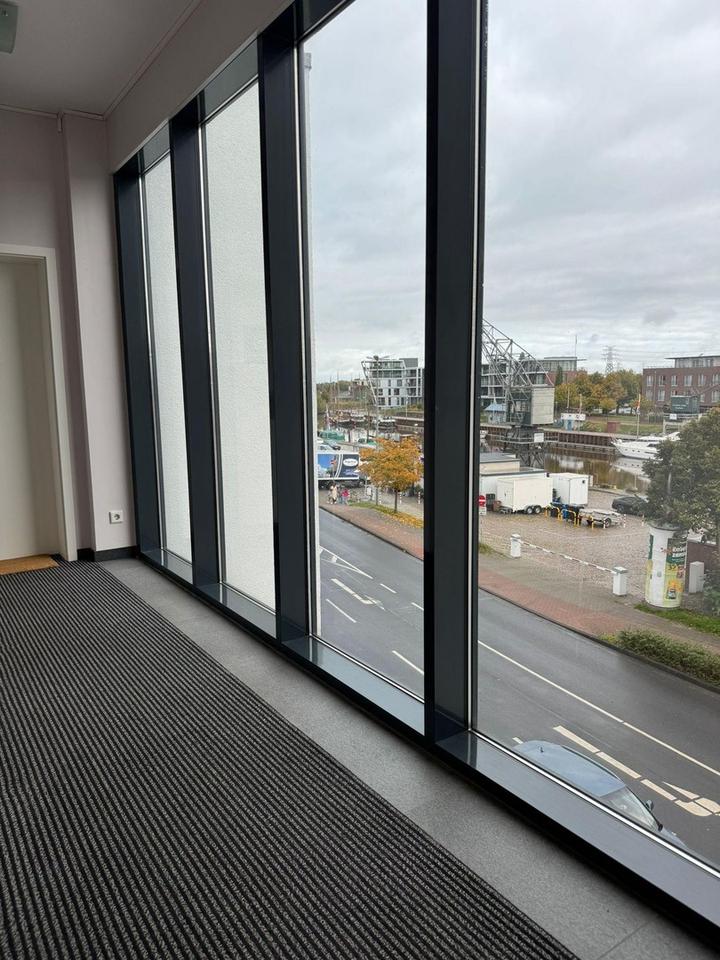 Das Gebäude erstreckt sich über vier Etagen und zeichnet sich durch wünschenswerte Mieter aus. Die von uns angebotene Büro bzw. Praxisfläche befindet sich im 2.Obergeschoss, mit traumhaften Blick auf den gesamten Hafen. Die Bürofläche erreichen Sie über ein großzügiges Treppenhaus oder mit dem Fahrstuhl.