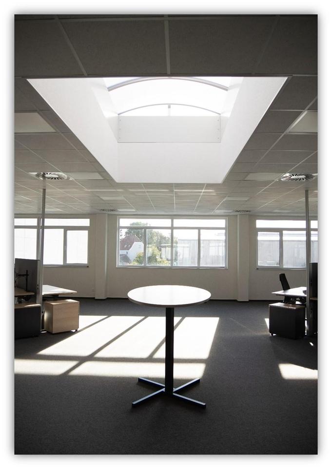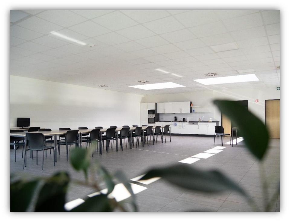 Für erholsame Pausen oder entspannte Meetings im Freien lädt eine großzügige Dachterrasse ein. Zusätzlich stehen Sozialräume bereit, darunter eine Küche, Getränkeautomaten, WC-Anlagen, Duschen sowie eine Kantine (ohne Service). Die Flächen können flexibel erweitert oder angepasst werden: