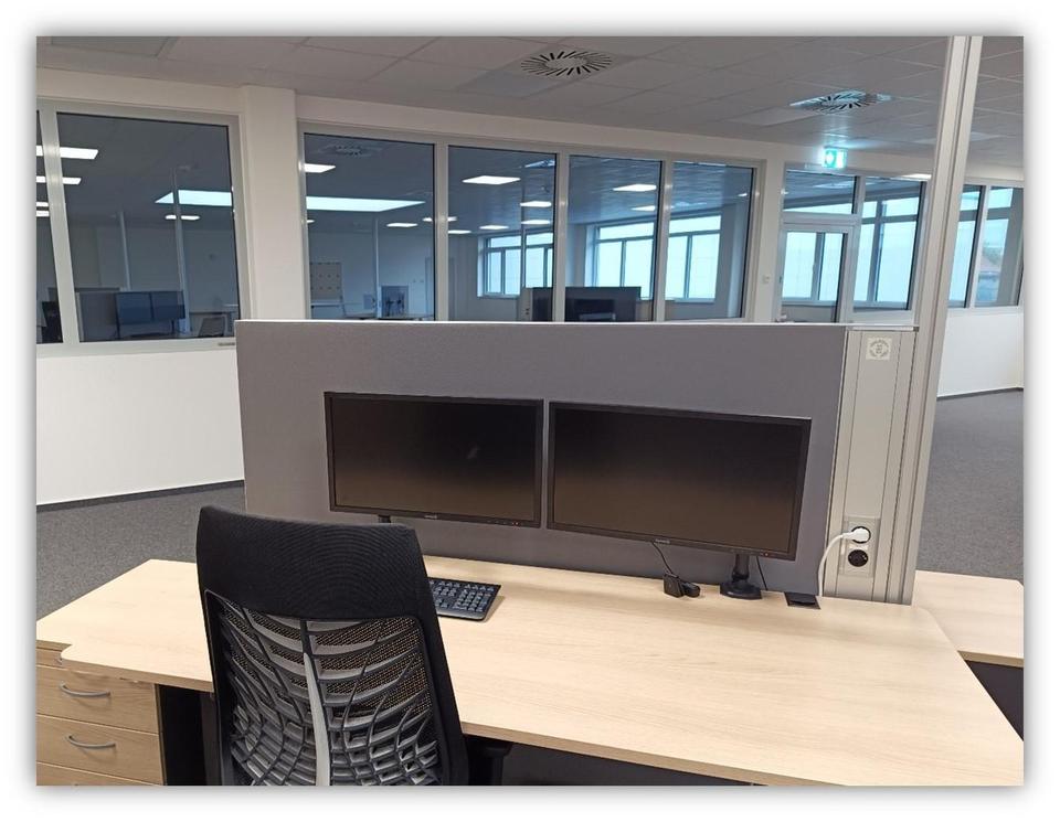 ▪ Eine Ausstattung mit modernen Büromöbeln und Hardware, z. B. Monitoren ist möglich.