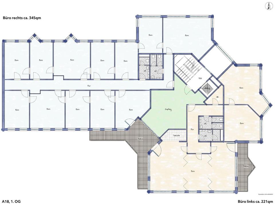 Der geräumige Büroeingangsbereich, sowie die Flure,