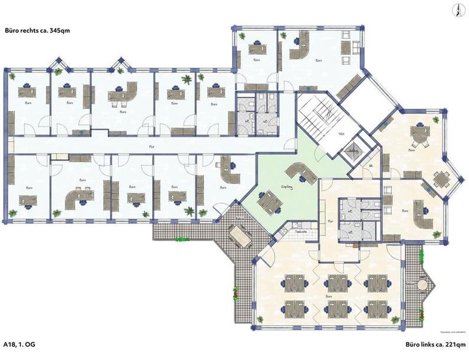 Die Etage mit insgesamt 566 qm kann in 2 separate Einheiten aufgeteilt werden.