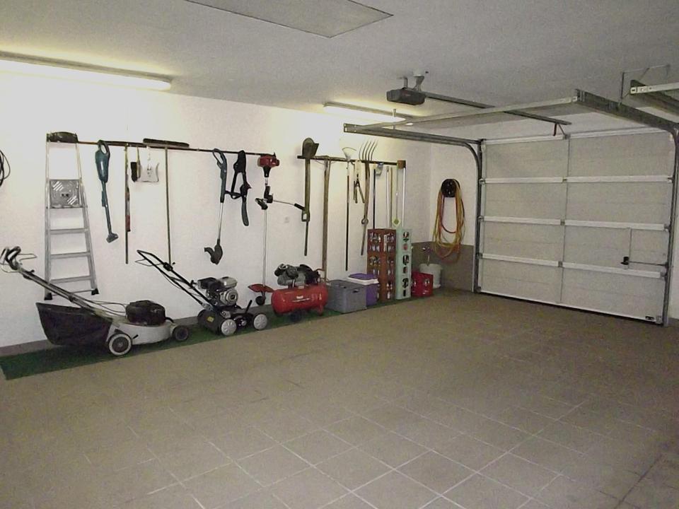 Doppelgarage mit 2 elektrischen Rolltoren ( Funkferngesteuert), Boden gefliest und Trinkwasserzapfstelle