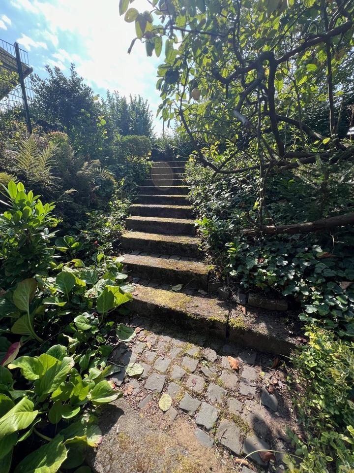 Der schön angelegte Garten verfügt über 3 Terrassen, welche aus Holz bzw. Altstadt – Kopfsteinpflaster angelegt wurden.