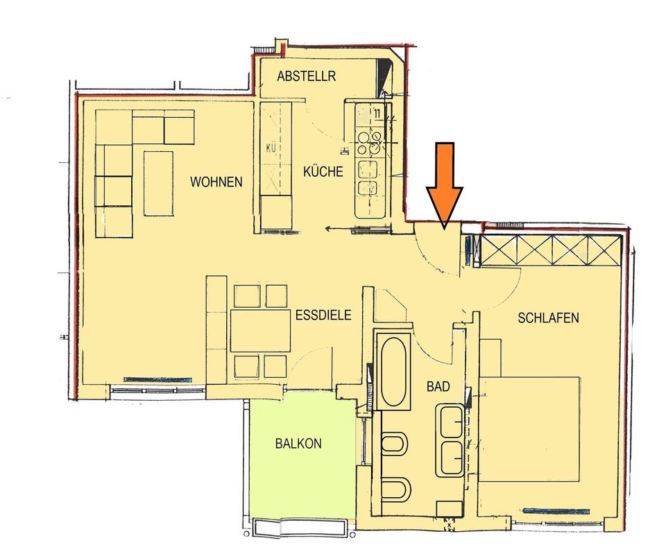 Die Wohnung ist vollständig zur Gartenseite ausgerichtet und überzeugt durch helle, freundliche Räume sowie einen durchdachten Grundriss. Der großzügige, überdachte Balkon (Süd-West-Ausrichtung) mit Blick ins Grüne bietet viel Sonne und lädt zum Entspannen ein.