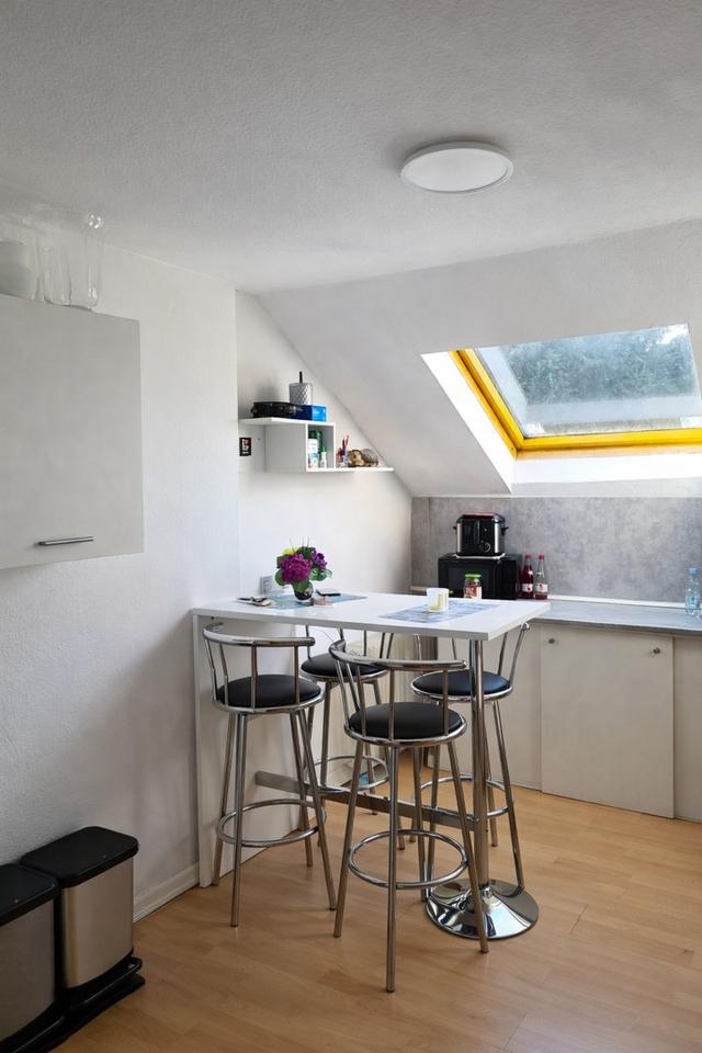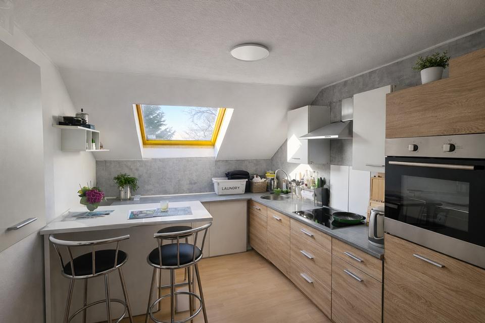 Der Grundriss umfasst ein Wohnzimmer, ein Schlafzimmer, eine separate Küche sowie ein Badezimmer. Durch die Dachgeschosslage wirkt die Wohnung hell und freundlich. Die Räume sind gut nutzbar und bieten sowohl Eigennutzern als auch Kapitalanlegern eine solide Grundlage.