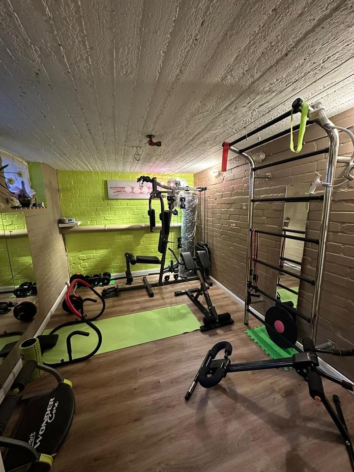 Viel mehr Raum, als man auf den ersten Blick vermutet, eröffnet das voll unterkellerte Untergeschoss: Rund 90 m² Nutzfläche verteilen sich auf mehrere vielseitig nutzbare Räume, darunter mögliches Wohn- und Arbeitszimmer, Waschküche, Vorratsräume, Heizungsraum sowie ein modernes Bad mit Badewanne. Die integrierte Sauna macht das Kellergeschoss zu einem echten Wellnessbereich. Dank separatem Außeneingang und Innentreppe eignen sich die Räume ideal für Hobby, Homeoffice, Gäste oder Fitness.