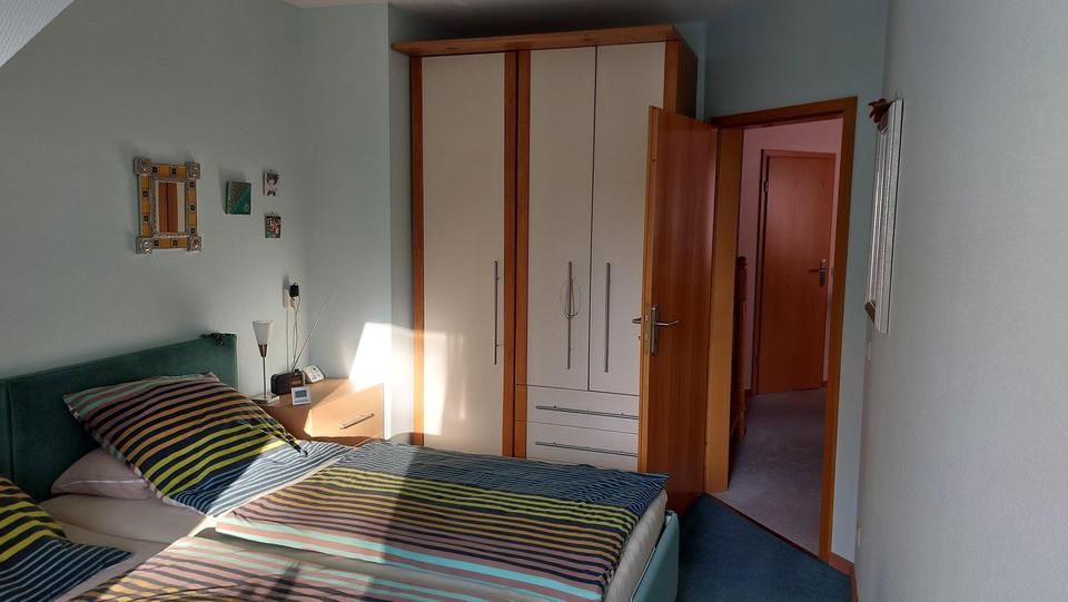 Im Obergeschoss stehen Ihnen zwei Schlafzimmer sowie ein offen gestalteter Arbeitsbereich zur Verfügung – ideal für Homeoffice oder als Spielfläche für Kinder. Das Tageslichtbad wurde hochwertig modernisiert und überzeugt mit einem großzügigen Duschbereich sowie moderner Sanitärausstattung.