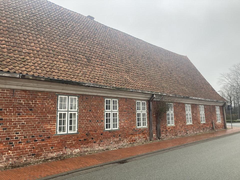 Vielfältige Nutzungsmöglichkeiten bietet das 1602 erbaute hochrangige Baukulturgut im charmanten, historischen und repräsentativen Ambiente. Es handelt sich hier um das älteste Haus der Stadt Tönning. 1988 wurde das Gebäude kernsaniert und dabei in einen annähernden Neubauzustand versetzt. Anschließend wurde das „Alte Hospital“ als Museum genutzt, ab 1999 als Architekturbüro. Dies ist auch der derzeitige Ist-Zustand. Das Erdgeschoß zeigt sich durch die vielen großen Fenster tageslichtdurchflutet, die üppige Raumhöhe sorgt für ein großzügiges Raumgefühl. Die originalen Deckenbalken und historischen Holzständer mit breiten Deckendielen geben in Verbindung mit dem Ziegelpflaster- und teilweise Holzdielenboden ein warmes und elegantes Ambiente. Derzeit sind im größten Bereich des Erdgeschosses reversible Leichtbau- und Glaswände eingesetzt. Diese können rückstandslos entfernt werden und ermöglichen weitere vielfältige Nutzungsmöglichkeiten. Der imposante Dachraum ist bis unter den First offen gestaltet, das originale Gebälk ist komplett sichtbar. Die Dachschrägen sind nach außen mit massiven Holzdielen verkleidet. Alle Fenster und Türen wurden 1988 sehr hochwertig ausgeführt und befinden sich im guten Zustand. Baurechtlich (Baugenehmigung liegt vor) ist das Haus Wohnraum (Wohnfläche 138m² + Nutzfläche 125m²), kann aber auch gewerblich genutzt werden. Bei dem hier angebotenen Gebäudeteil handelt es sich um den Ostflügel des „Alten Hospitals von 1602“, die WEG Teilung liegt vor. Zum Haus gehört ein Grundstücksanteil von 736/2 m², ein weiterer Grundstücksanteil (Bauland) kann dazu erworben werden. Weitere und ausführliche Informationen erhalten Sie gerne auf Anfrage vom Verkäufer. Privatverkauf – keine Courtage!