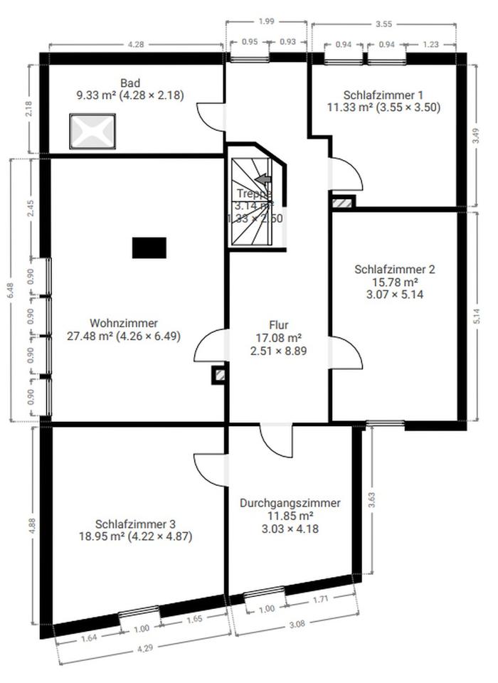 Wohnung 1: ca. 89 m², helle und kompakte Einheit mit klassischem Grundriss, zuletzt 2014 saniert
