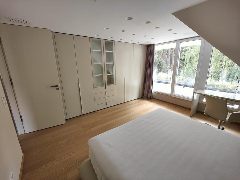 Die großzügige Maisonette-Wohnung erstreckt sich über das Obergeschoss (ca. 132 m² Wohnfläche zzgl. ca. 32 m² Terrasse) sowie das Dachgeschoss (ca. 92 m² Wohnfläche zzgl. ca. 14 m² Balkon) und verfügt über einen separaten Hauseingang, der über einen eigenen Treppenaufgang erreichbar ist.
