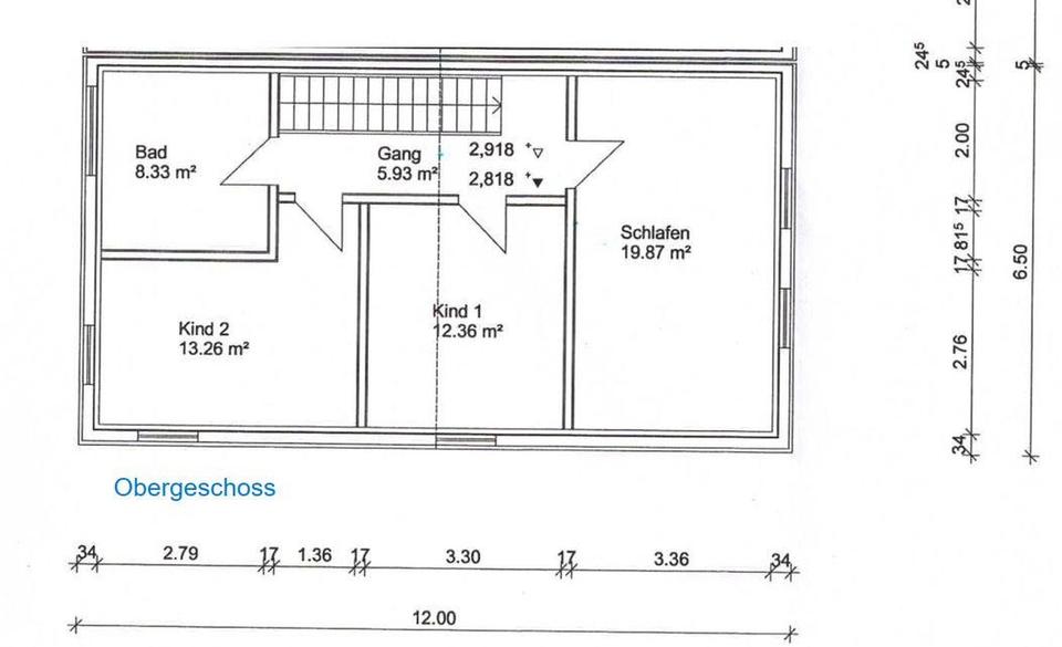 Das OG bietet neben dem geräumigen Schlafzimmer noch zwei weitere helle Räume, die als Kinderzimmer oder Büro genutzt werden können. In allen Räumen ist Telefon- sowie Antennenanschluss vorhanden.