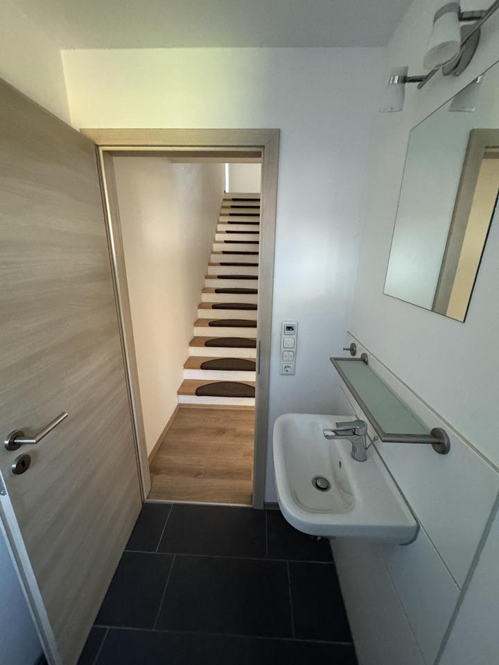 Böden: Laminat, Fliesen im Bad, Gäste-WC, Abstellraum und Eingangsbereich