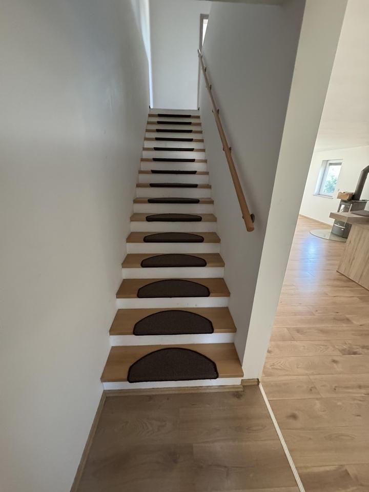 Das Haus beeindruckt mit dem großen, lichtdurchfluteten Wohn-, Ess- und Kochbereich im EG. Die aktuell eingebaute Küche ist im Mietpreis nicht enthalten, soll aber durch Ablöse oder Mietzahlung übernommen werden.