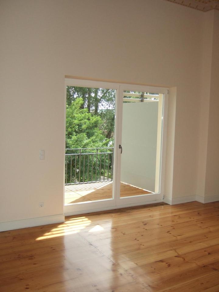 Lichtdurchflutete Wohnung, bodentiefe Fenster zur Südseite, Originaldielen aus der Bauzeit, moderne Einbauküche in weiß und Hochglanz, Boschgeräte, Bad mit Dusche, Solnhofener Marmor, großer Balkon zur Südseite mit Blick auf den Dom und die Elbe, Aufzug, Gartenanlage.