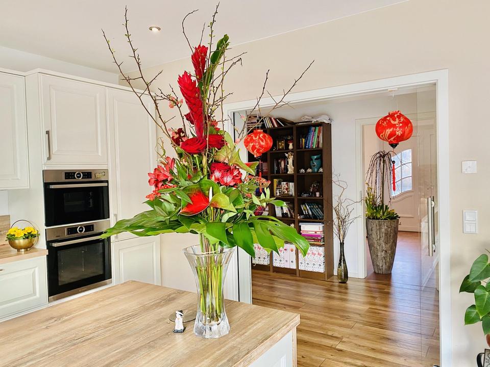 Terrasse, Garten, Keller, Vollbad, Einbauküche, Gäste-WC, Parkett, Fliesen